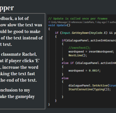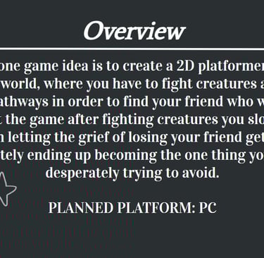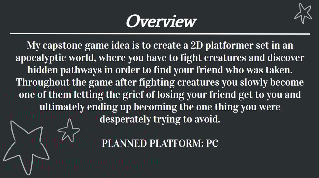This is the final project I have working on for my Game Design pathway. I got the chance to make whatever I wanted, and I decided to create something that I'm passionate about, and that is 2D art.