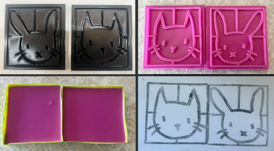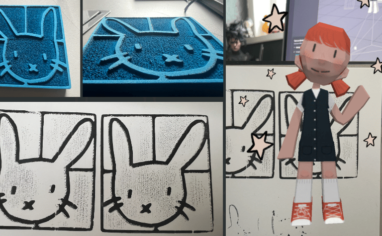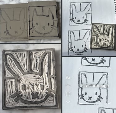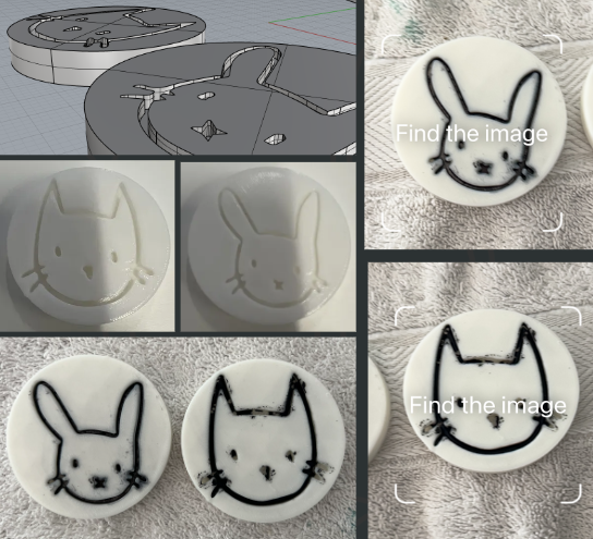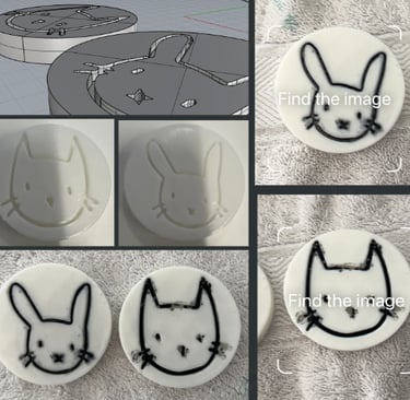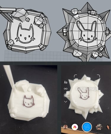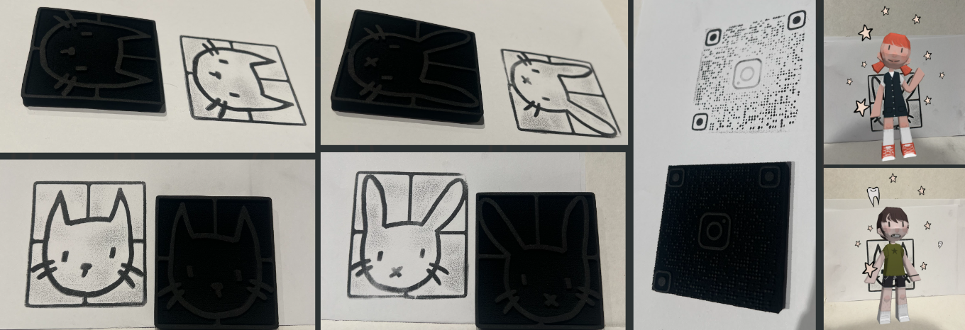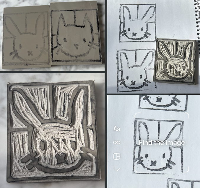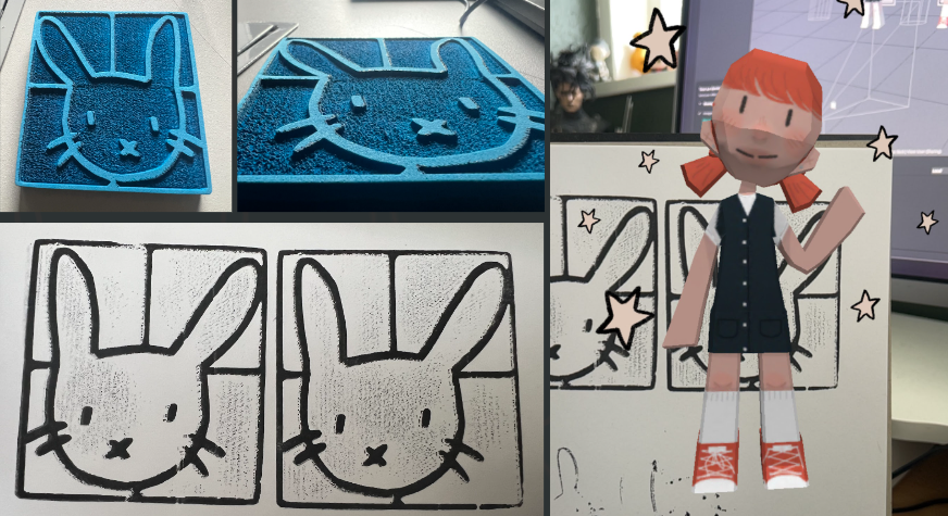 Here I changed my idea again, instead of having a base platform that my digital character would stand on, I went with the idea of creating a stamp that I was able to stamp anywhere I wanted, people could scan the stamped image, and then they can see the AR character on their phones